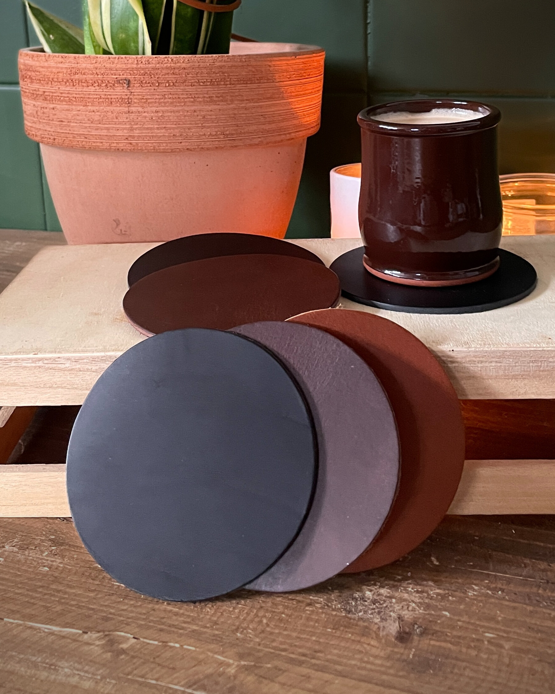 Doprajte si štýl a kvalitu s ručne vyrábanými podložkami z pravej talianskej kože. Ich minimalistický kruhový dizajn o priemere 10cm v čiernej farbe dodá vášmu interiéru sofistikovaný nádych a zároveň ochráni povrchy pred poškodením.