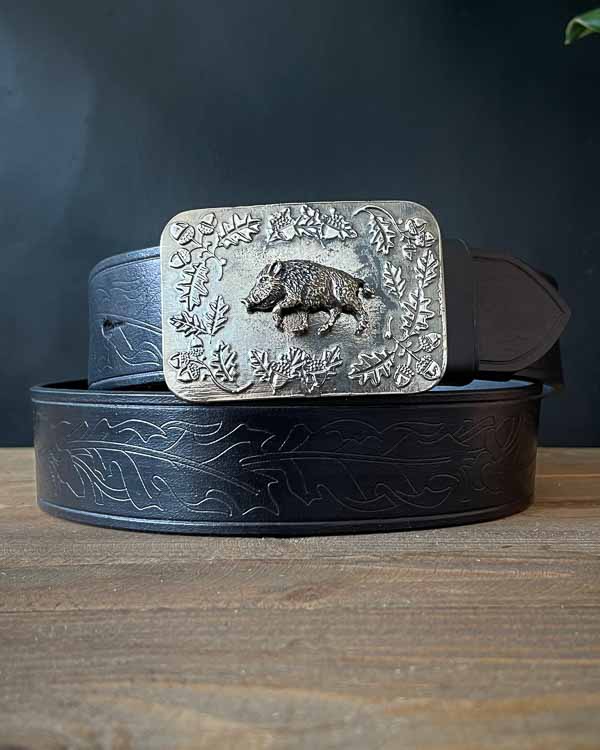 Opasok Diviak bol vytvorený pre poľovníkov a lesníkov, či obdivovateľov našich krásnych lesov a prírody. Koža zdobená dubovými listami a žaluďmi spolu s masívnou prackou s motívom diviaka zaručia, že opasok určite nebude prehliadnutý.