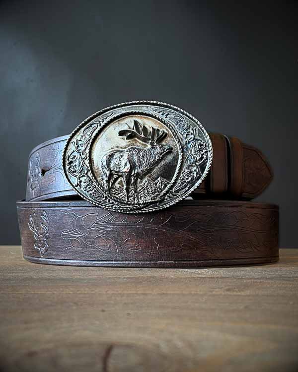 Opasok Jeleň bol vytvorený pre poľovníkov a lesníkov, či obdivovateľov našich krásnych lesov a prírody. Koža zdobená dubovými listami a žaluďmi spolu s masívnou prackou s motívom jeleňa zaručia, že opasok určite nebude prehliadnutý.
