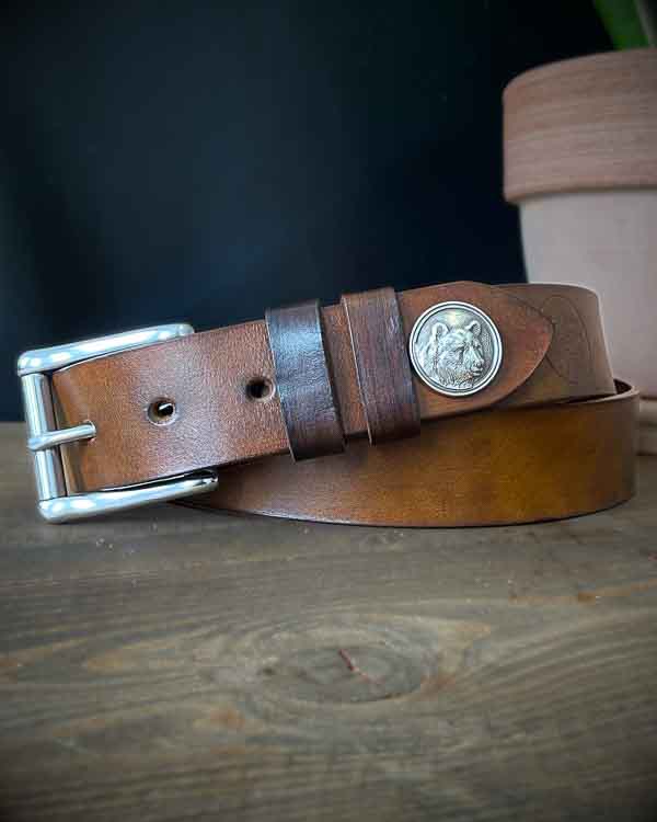 Klasický, ručne vyrobený opasok zdobený končom medveďa. Tieto opasky sú vyrobené aby vydržali všeličo, a nosením sa vám bude jeho kvalitná, hrubá koža prispôsobovať. Je vhodný na každodenné nosenie k rifliam či nohaviciam.
