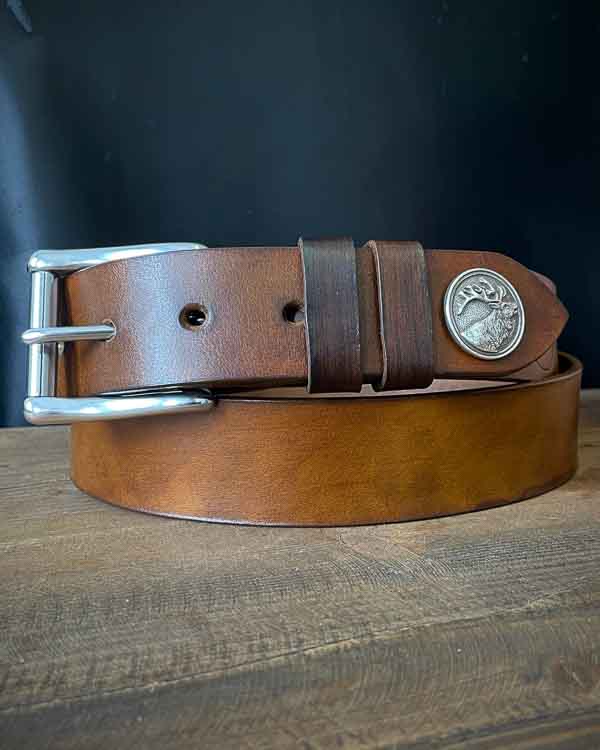 Klasický, ručne vyrobený opasok zdobený končom jeleňa. Tieto opasky sú vyrobené aby vydržali všeličo, a nosením sa vám bude jeho kvalitná, hrubá koža prispôsobovať. Je vhodný na každodenné nosenie k rifliam či nohaviciam.