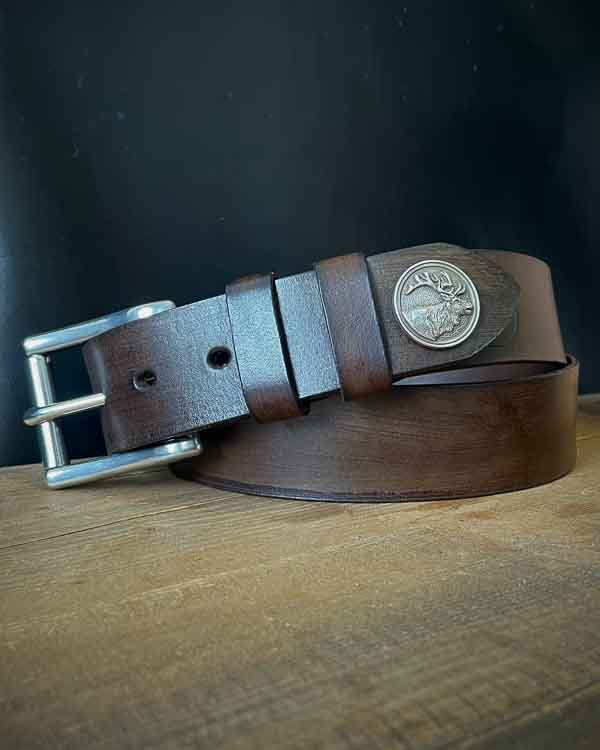 Klasický, ručne vyrobený opasok zdobený končom jeleňa. Tieto opasky sú vyrobené aby vydržali všeličo, a nosením sa vám bude jeho kvalitná, hrubá koža prispôsobovať. Je vhodný na každodenné nosenie k rifliam či nohaviciam.