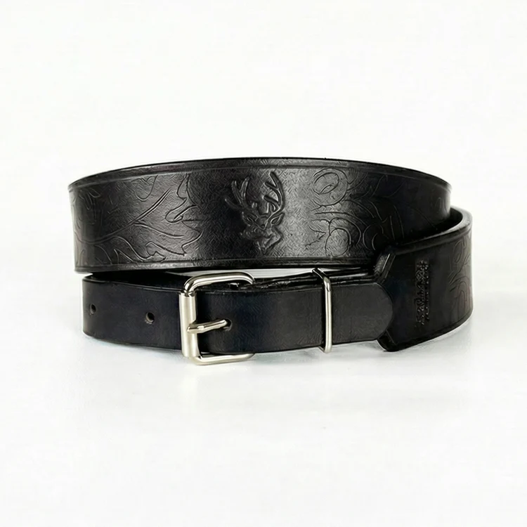 Tento čierny poľovnícky remeň nie je len obyčajným doplnkom, ale výsledkom poctivej ručnej práce v našej dielni Redman v Michalovciach. Používame prírodnú hovädziu hladenicu, ktorú zdobí razený motív jelena v strede, doplnený o dubové listy a žalude. Na jednej strane remeňa nájdete naše logo, ktoré garantuje slovenský pôvod a kvalitu spracovania.