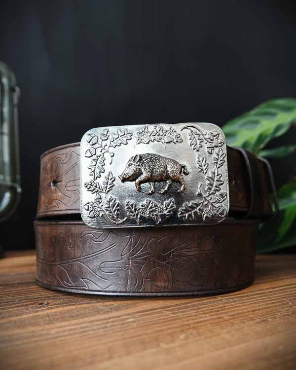 Opasok Diviak bol vytvorený pre poľovníkov a lesníkov, či obdivovateľov našich krásnych lesov a prírody. Koža zdobená dubovými listami a žaluďmi spolu s masívnou prackou s motívom diviaka zaručia, že opasok určite nebude prehliadnutý.