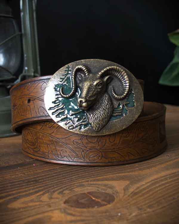 Kožený opasok s motívom muflóna bol vytvorený pre poľovníkov a lesníkov, či obdivovateľov našich krásnych lesov a prírody. Koža zdobená dubovými listami a žaluďmi spolu s masívnou prackou s motívom muflóna zaručia, že opasok určite nebude prehliadnutý.